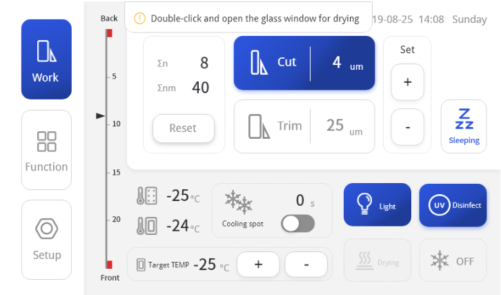 UV disinfection and defrosting can be activated as scheduled or manually to synchronize with the laboratory’s routine. RH Scientific’s RH6250 can be switched to sleep mode according to the preset schedule and thus helps to save energy.